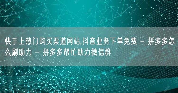 文章标题:快手热门购买渠道网站与抖音业务助力拼多多,探索免费下单与微信助力群的新世界